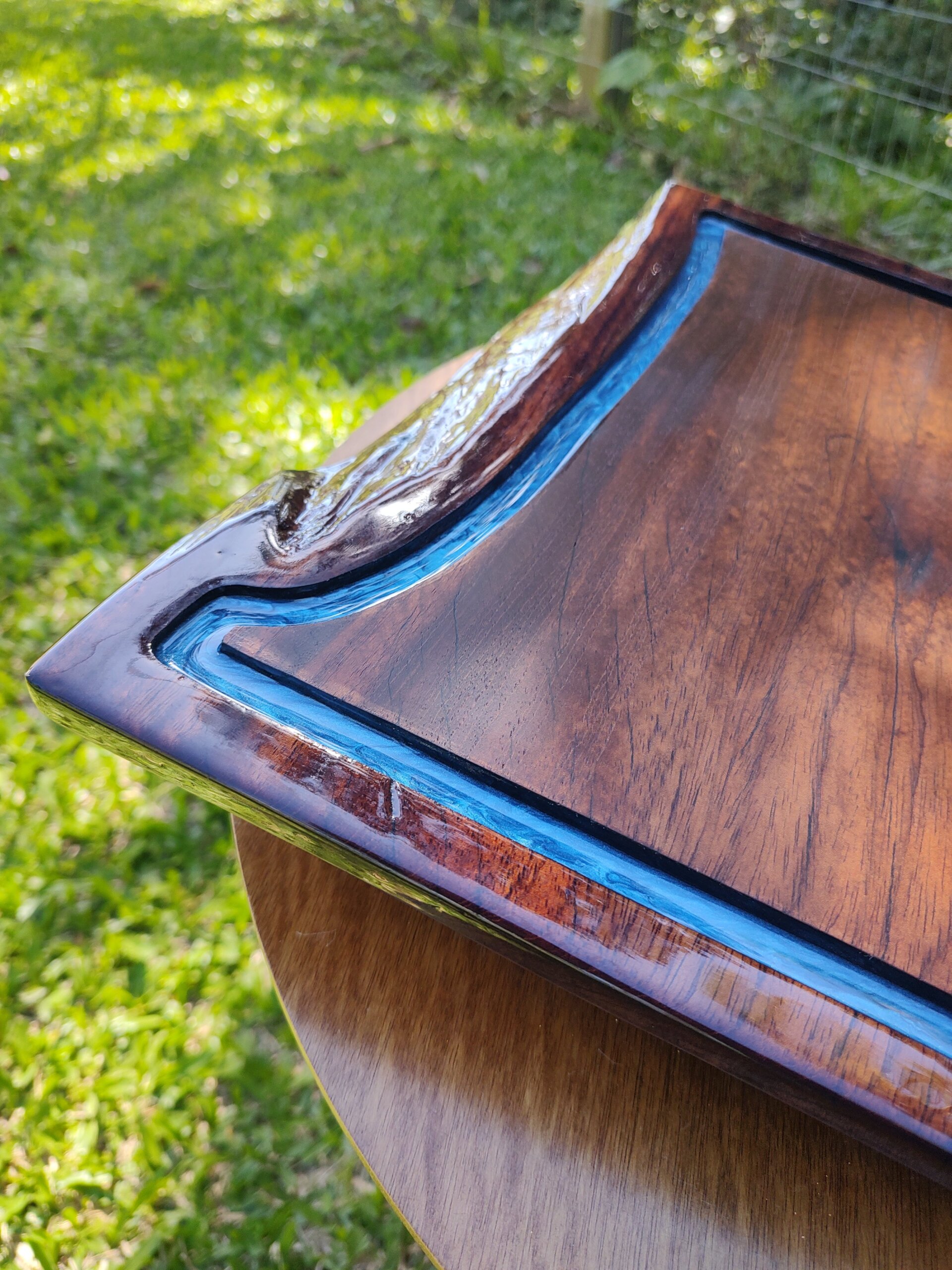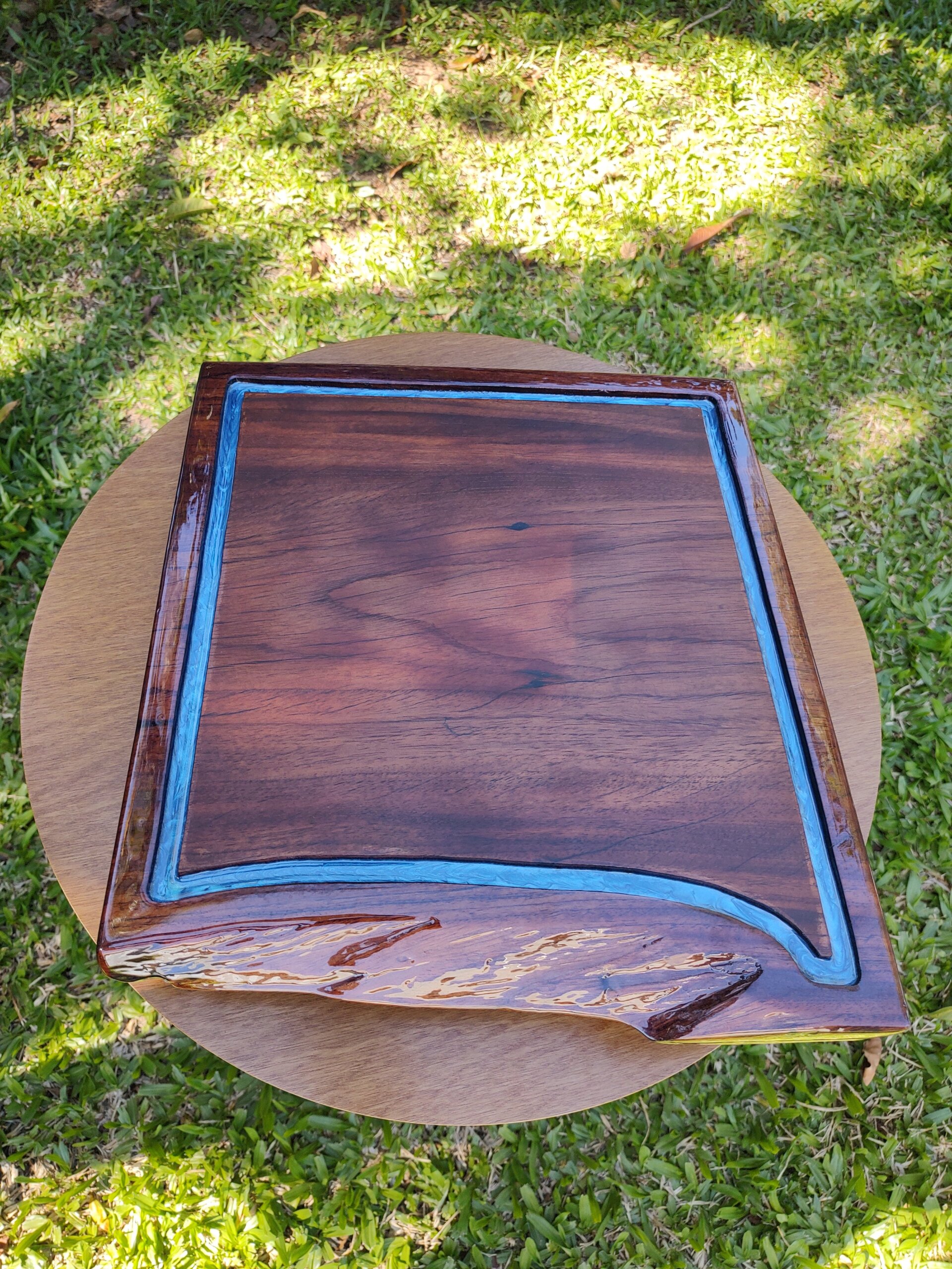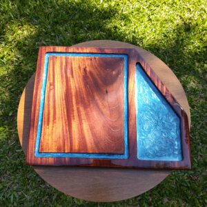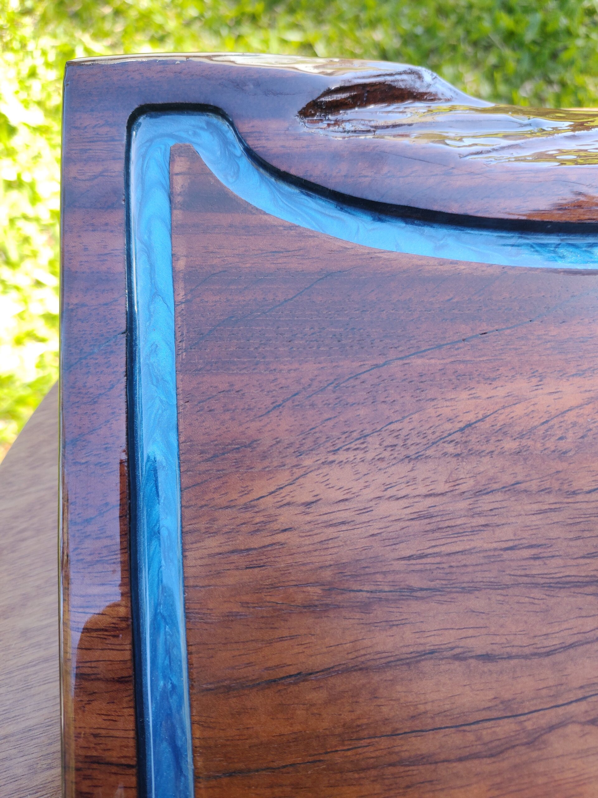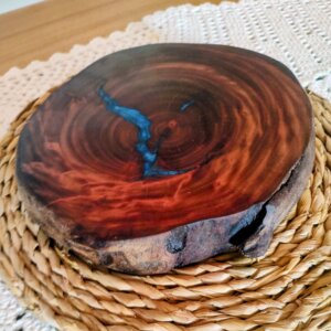 Material: Madeira maciça com resina epóxi azul