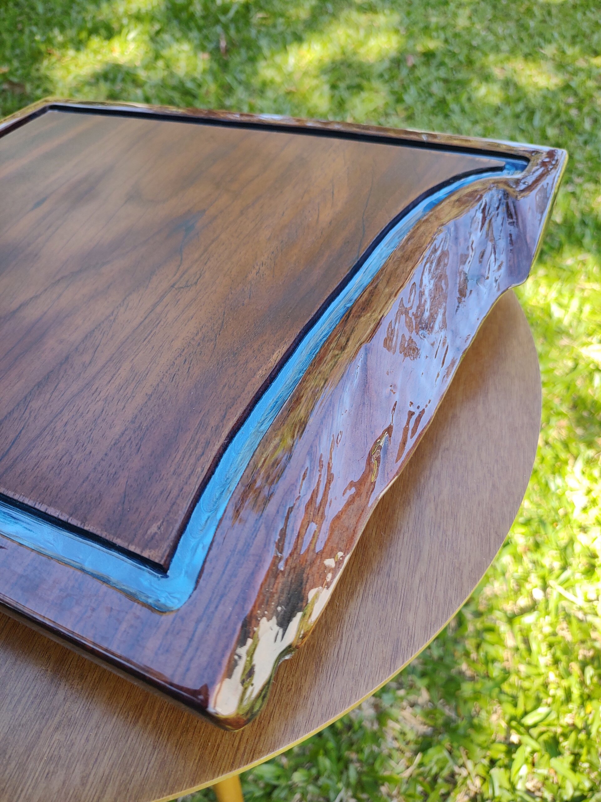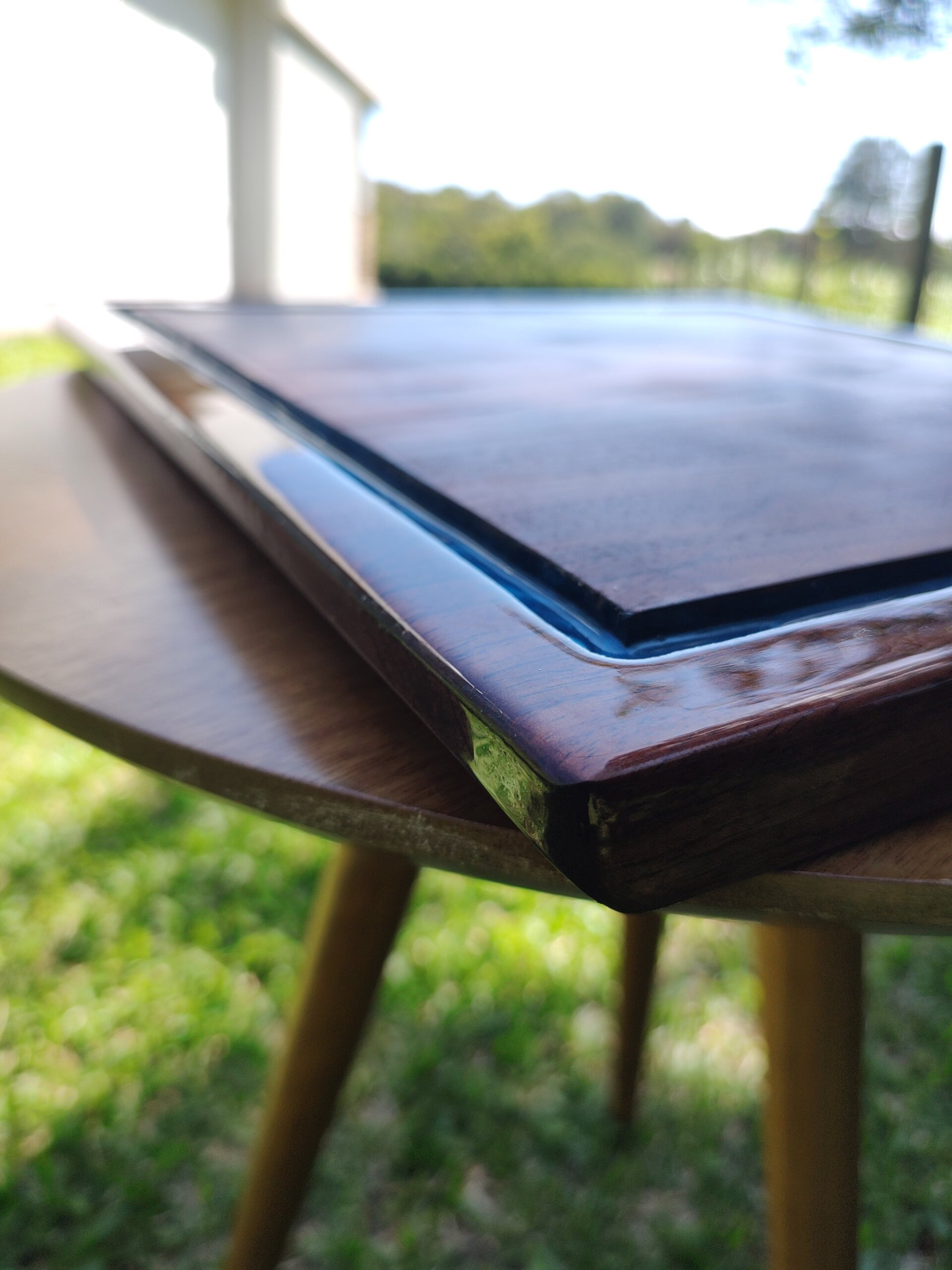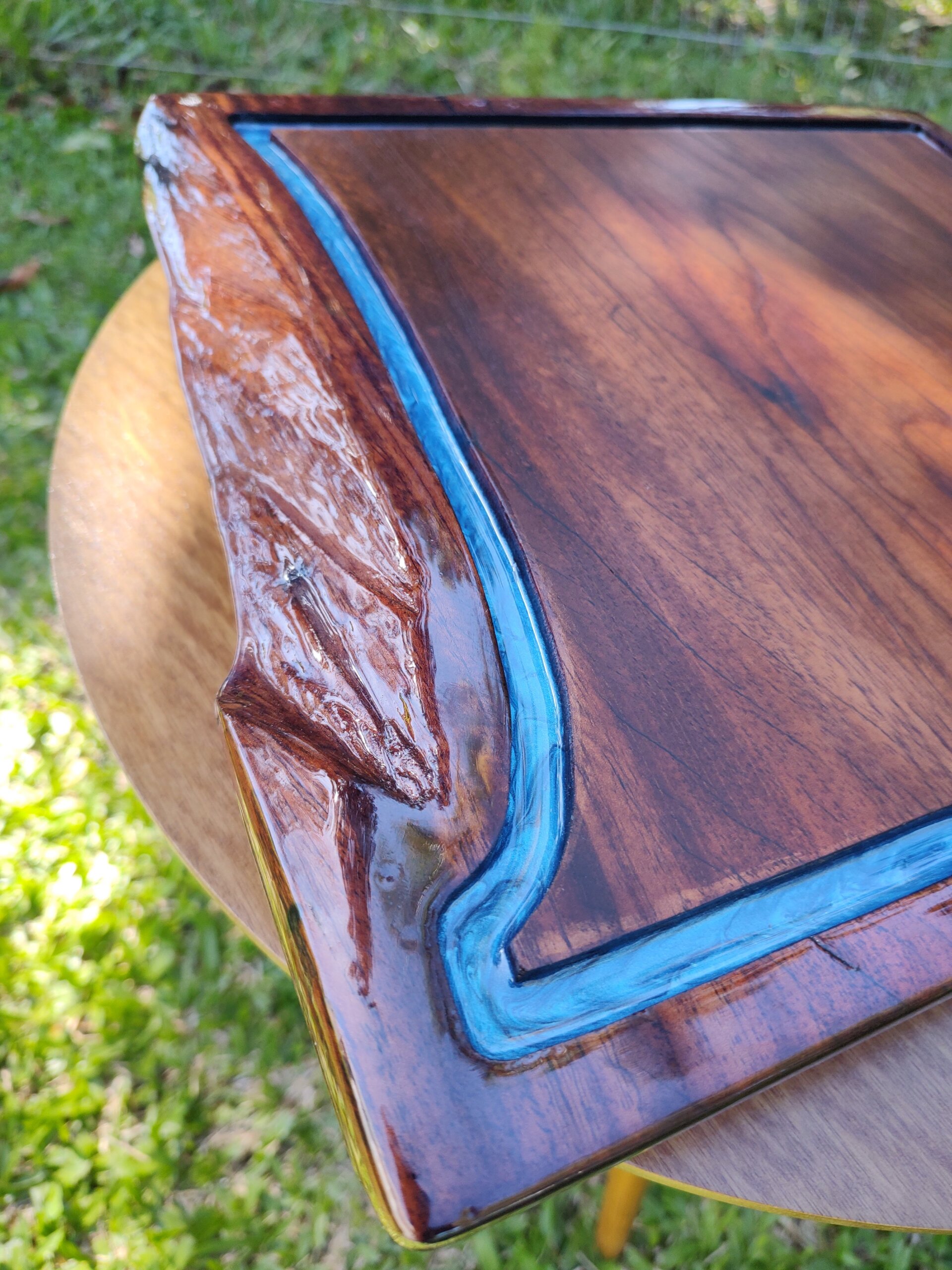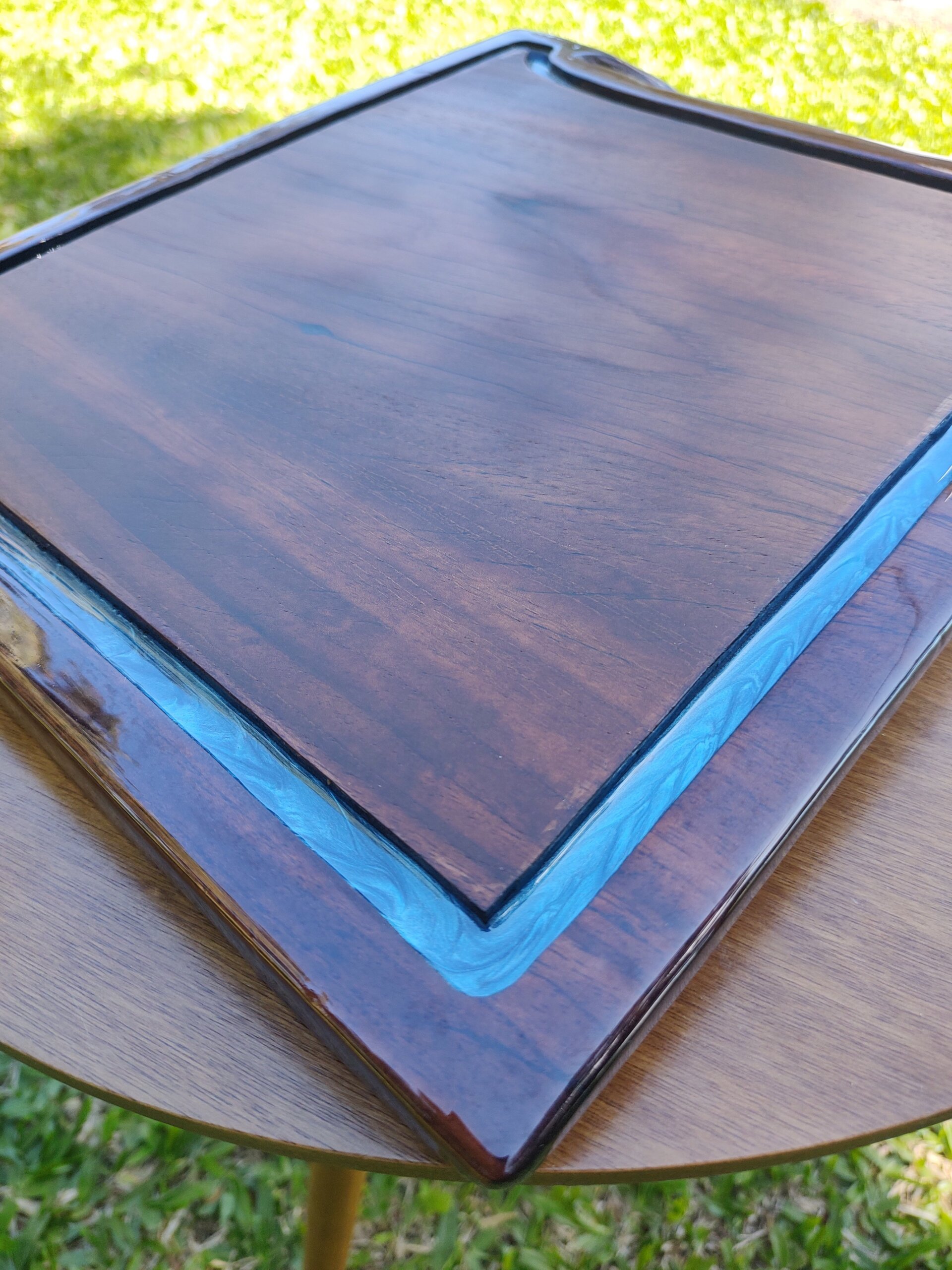 Material: Madeira maciça com resina epóxi azul